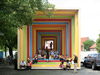 Zum zweiten Mal überhaupt vergab der Deutsche Fassadenpreis 2009 auch einen Sonderpreis. Er ging im diesjährigen Wettbewerb an eine Raumskulptur mit farbiger Botschaft, die die gebaute Lebensumwelt erlebbar macht. Selten gelingt es, mit wenigen Schritten so viele unterschiedliche Perspektiven auf bestehende Bauten und den Kontext farbiger Wirkungen zu erhaschen wie mit der „Sehstation“, die seit 2008 und noch bis 2010 durch verschiedene Städte Nordrhein-Westfalens tourt. Die mobile Installation aus Holzlamellen ist als begehbares Okular geformt, das die Blicke auf die gebaute Umgebung lenkt. In sich ist der sich verjüngende Quader abgestuft; die Stufensprünge wurden mit farbigen Akzentuierungen rahmenartig in frischen, reinen Tönen hervorgehoben. Je nach Standpunkt ergibt sich so von außen eine durchweg farbige Skulptur oder ein Holzbau mit feinen farbigen Schattierungen. Im Inneren erzeugen die Rahmen einen perspektivischen Farbraum mit erstaunlicher Tiefe. Hier kann und soll man „Sehen lernen“ – so das Motto der Kampagne im Rahmen der Landesinitiative Stadt Baukultur NRW, die die Öffentlichkeit auch mit dieser Installation für die gebaute Umwelt sensibilisieren will. Konzipiert und umgesetzt haben diese „fliegende Ausstellung“ die Augsburger Zimmerei Bernd Schmid sowie der Architekt Andy Brauneis in Zusammenarbeit mit Nicolette Baumeister (Kommunikationsmodule) und Christian Schüller (Tragwerksplanung). Die Jury belohnte die Schöpfer dieser Aktivskulptur, die Farbe und Architektur spielerisch und nachhaltig erlebbar macht, mit dem diesjährigen Sonderpreis.